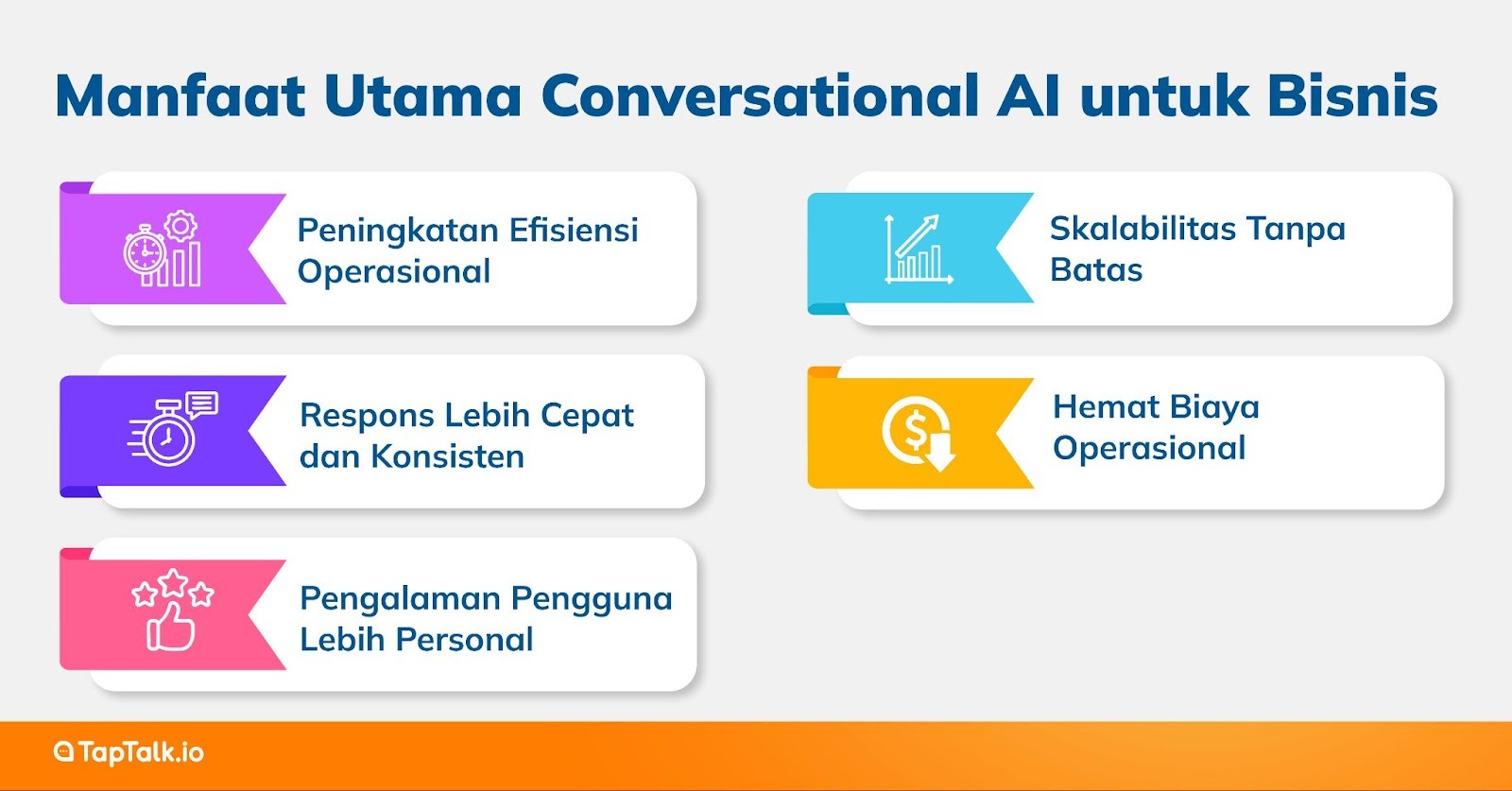 Jika Anda ingin membawa interaksi pelanggan dan efisiensi operasional bisnis Anda ke tingkat yang lebih tinggi, mengadopsi solusi AI Percakapan adalah langkah yang strategis. Di sinilah AI Chatbot by TapTalk hadir sebagai mitra andal Anda. Dengan memanfaatkan teknologi canggih ini, AI Chatbot by TapTalk memungkinkan Anda untuk segera mewujudkan janji dari Conversational AI yang memberikan pengalaman pelanggan yang luar biasa, tersedia 24/7, dan membantu agen manusia fokus pada interaksi bernilai tinggi. Jangan biarkan bisnis Anda tertinggal; saatnya beralih ke masa depan interaksi yang cerdas dan mulus dengan solusi dari TapTalk.