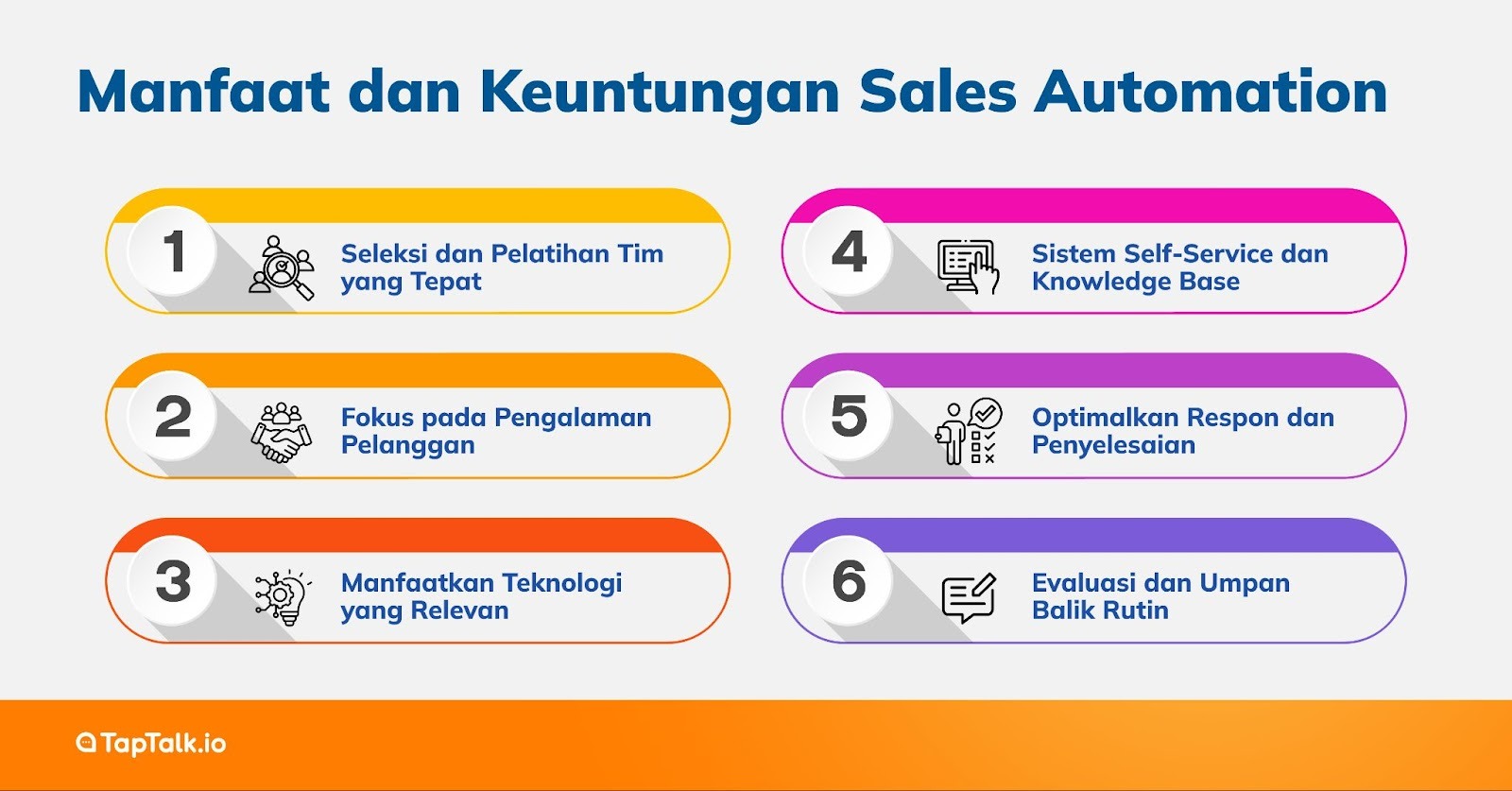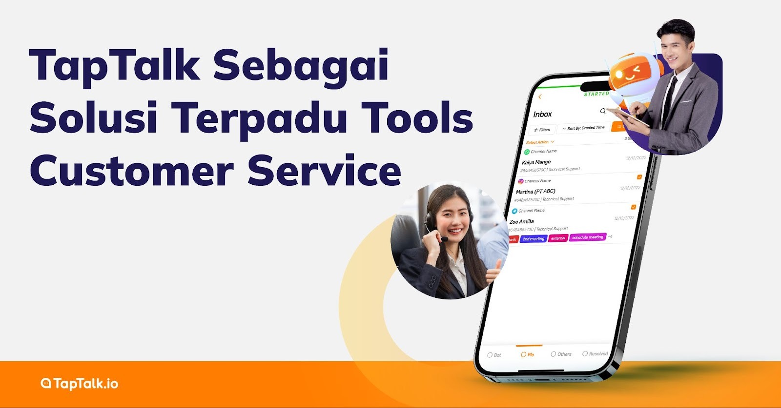 Untuk membantu bisnis Anda mengelola ribuan percakapan pelanggan dari berbagai kanal tanpa kewalahan, TapTalk hadir sebagai solusi yang andal. Dengan TapTalk, Anda bisa mengintegrasikan semua saluran komunikasi dalam satu dasbor omnichannel. Tak hanya itu, TapTalk menyediakan solusi AI Chatbot canggih yang mampu melakukan bridging (peralihan) secara mulus ke agen manusia saat dibutuhkan. Ini memastikan pelanggan tetap mendapatkan jawaban instan dari bot untuk hal umum, namun tetap bisa berbicara dengan manusia untuk masalah yang lebih personal. Tingkatkan efisiensi tim CS Anda dan berikan pengalaman pelanggan yang berkesan bersama TapTalk.